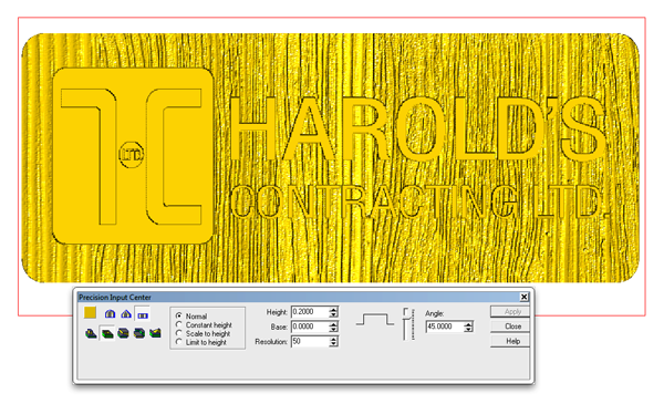 Then I Modified the relief by adding the stylized ‘H’. The ‘LTD.’ was the last command by subtracting from the relief.