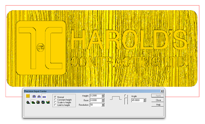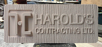 We had a meeting with the contractor for our new house today. There are many details to iron out before the actual work can begin. Today’s meeting was about where we were going to relocate the gas lines in preparation for the new building. After we had wrapped our discussion I told Harold there was one item we needed to discuss. With a serious look on my face I told him no temporary coroplast signs would be allowed on the job site. (I knew that is what he used). He nodded. And then I took him to the router room and showed him the sign I was making for him. The multiCam was on the final passes as we looked. Harold broke into a HUGE grin and promised me his old signs were going in the dumpster.
