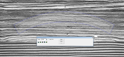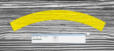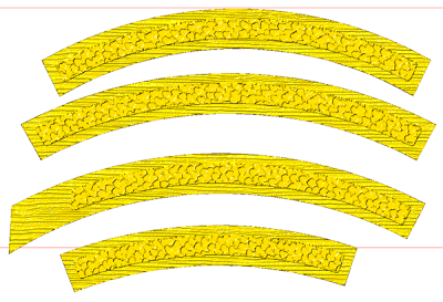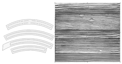 The curved trim pieces were 5-7 feet long and were to be heavy woodgrain. I imported the sandblasted woodgrain from the TEXTURE MAGIC collection. This was enlarged to fit the curved piece inside a section of grain I liked and then applied at 0.2″