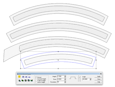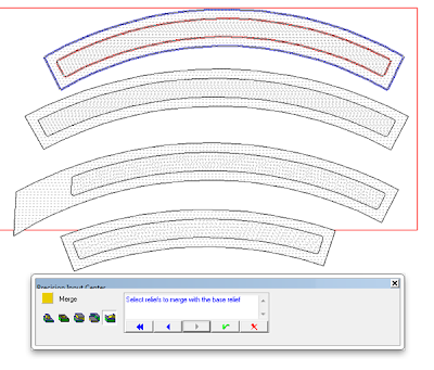 I first selected the backgrounds and created a flat relief that was 0.5″ tall. The hearts were then selected individually in three passes making sure the ones selected did not overlap. The three passes were made into flat relief 0.8″, 0.7″ and 0.6″ respectively. After each pass selecting the hearts and creating the reliefs I merged them to the background relief and then deleted them to minimize confusion. In retrospect I could have created the hearts on different layers.