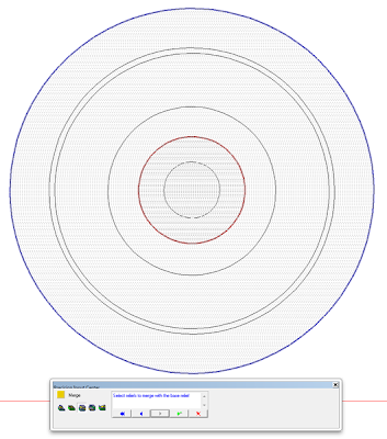 To drill the axel hole I created a zero height relief 2″ across. This would be merged lowest to the wheel, effectively creating a hole in each wheel.