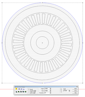 The center of the wheel was made by making a relief 3″ tall. This was then merged highest with the wheel relief.