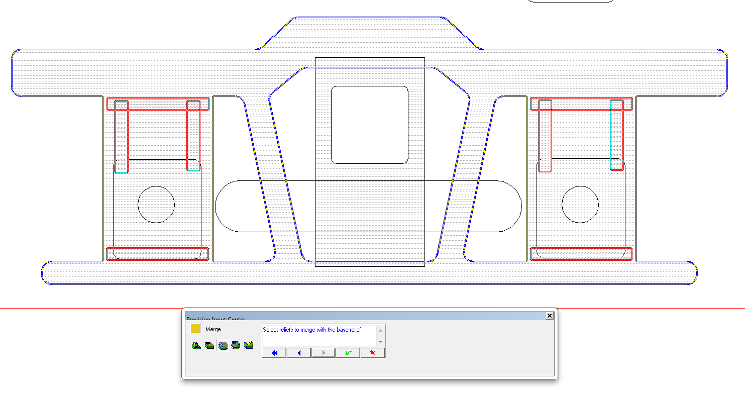 I then built a second set of reliefs for the truck axle housings. This was a simple flat relief 1.2″ tall. I used the bottom squares to modify the relief by adding to. The axle holes were ‘drilled’ by building a zero height relief. This was merged lowest with the truck relief.