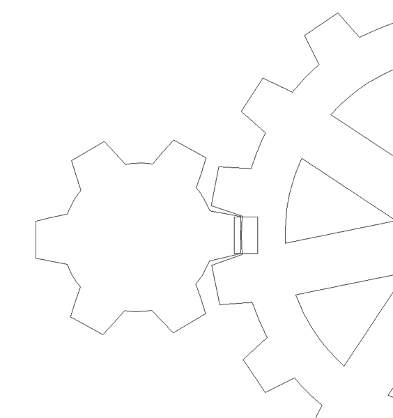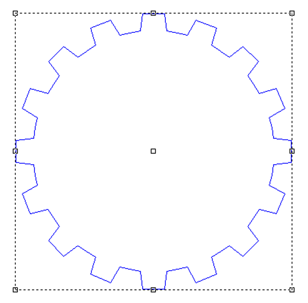 Creating the gears was pretty simple. I first drew a circle, then a rectangle. A second box was drawn as a measuring device for the next step. I centred all of the pieces with each other.