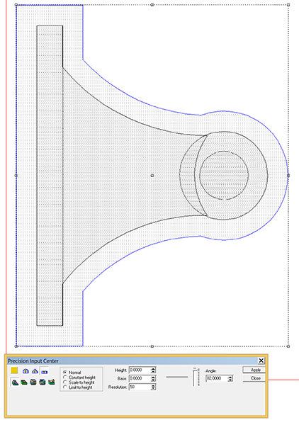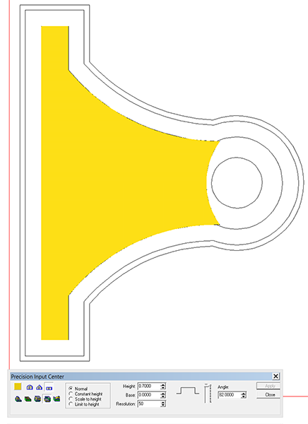 The table support bracket was next and again it was fairly simple. I defined the shapes using the vector drawing tools. The rectangle at the bottom was used to segment off the bottom piece. I defined this area using the jigsaw tool.