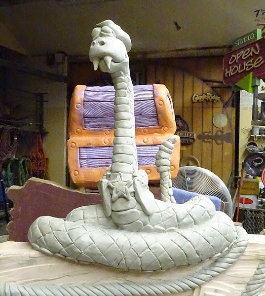 The last sign for the Cultus Lake Adventure Park was designed and routed earlier this week. Similar to most of our signs it was routed in there layers to allow us to laminate a welded steel frame inside. Then it was time for a little hand sculpting fun. A 5/8″ steel rod was formed and glued up into the top of the sign and then we used Abracadabra Sculpting Epoxy to do the snake. To save some material I crunched up some heavy duty tin foil to bulk out the body. The rope was created in a similar manner. The entire sculpt took about four hours.