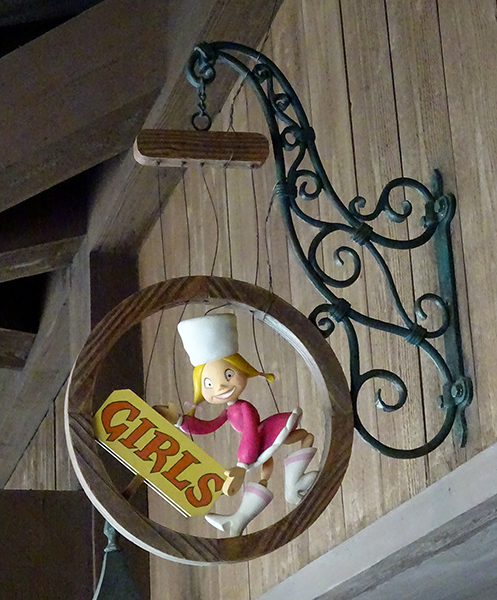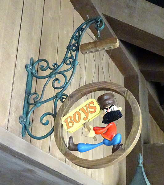 As an example I show three wonderful signs with brackets that point the way to the washroom near Pinocchio’s attraction.
