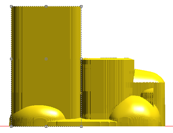The vehicles would be a pickup, a long flatbed truck and a short flatbed cab over. Behind the bar were three round corner rectangles. I selected them and made them into a 1″ tall relief.