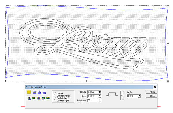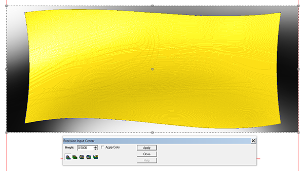 I then imported one of the new bitmaps and applied it using a setting of 0.5″. The result was a flag that waved vertically in a cool way.