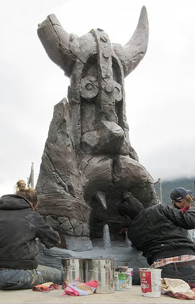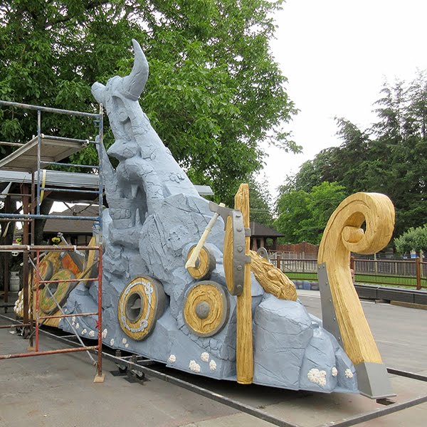 Work continues on the Viking ship project for Motiongate Park in Dubai. With the deadline quickly approaching the entire crew is working hard to finish off the features.The piece closest to finish is the large target. The last coats of the base colours were painted on yesterday.