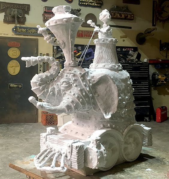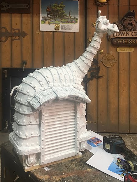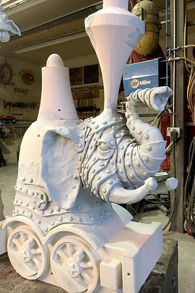I used Abracadabra Sculpting epoxy to sculpt the animal bodies of the train. Steel rods were used as reinforcement. The shapes were first bulked out and allowed to harden. Then I went back over the pieces adding detail as necessary. I did the sculpts over a period of three days.