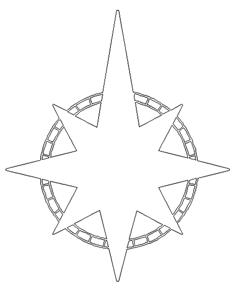 The compass star is an element that needs a little explanation. If you make a star shape and then use the bevel tool to create a relief you get a funny shaped bevel. The higher the bevel the more pronounced this shape becomes. The image on the right is that shape. To get a true compass star the points are build individually and then combined. This is the method we used.