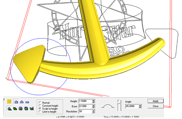 Peter opted to use the chamfer tool to modify the flat relief of the anchor bits. This created an interesting profile.