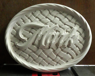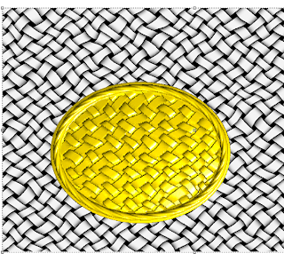 I then created a domed relief for the center portion, imported a bitmap called wiggly weave and applied it to the relief
