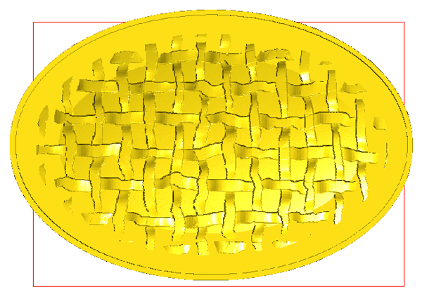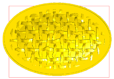 The next step was to create a second flat oval. The oval with the weave texture blended into the flat one when rendered.