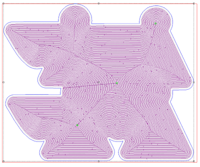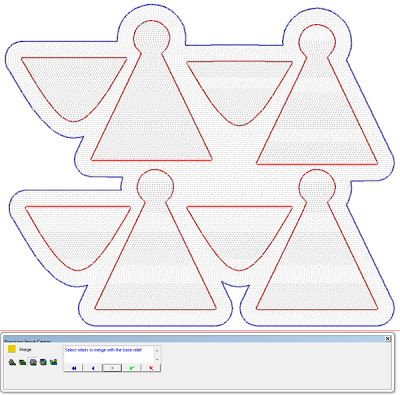 I created an offset vector line of 0.7″ around ill the pieces and then made a zero height relief. Then I merged the pieces of the nose cone to the new relief and then deleted the cone pieces.