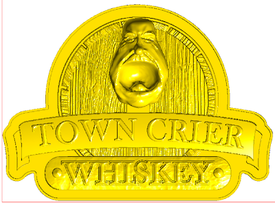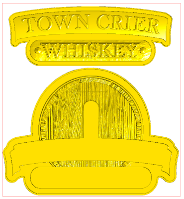Then I added a scroll with town crier and panel underneath. A whiskey barrel head for a background finished the story and tied it into the Pub decor nicely. The colors will also mirror everything else we have done to date.