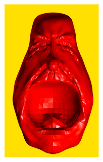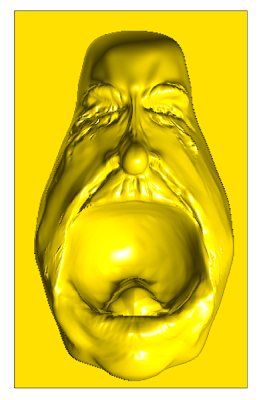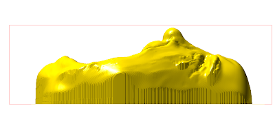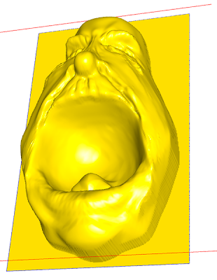 For the face I created a rough sculpture in Mudbox – a freehand sculpting program. It exports an .obj mesh file. I converted this to a .stl file in another program and then imported this into EnRoute. I sized, rotated and positioned the mesh and then created a zero height relief to which I would merge it