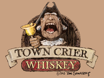 We needed one more sign for a key area in the Fox and Hounds Pub. The sign wouldn’t be large, measuring about 30 inches tall at most but it needed to shout out. We toyed with a multitude of ideas and I filled my sketchbook with ideas but nothing clicked. The owner of the pub had asked for a sign that featured whiskey and was very British. Yesterday I typed pub signs into google, looking for inspiration. I didn’t see anything I liked but I did get an idea. Town criers dated back to the 1500’s. I did a quick sketch and knew this was the perfect idea.