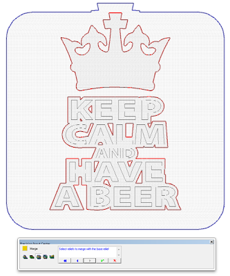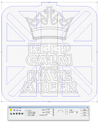 I then created separate flat reliefs of the outlines of the lettering and crown. These were raised to clear the flag and textures, then merged highest to create one file.