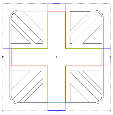 The jigsaw tool was the tool of choice for much of the next operation. I worked my way around the flag creating new vectors from the inside profiles of the combined shapes.