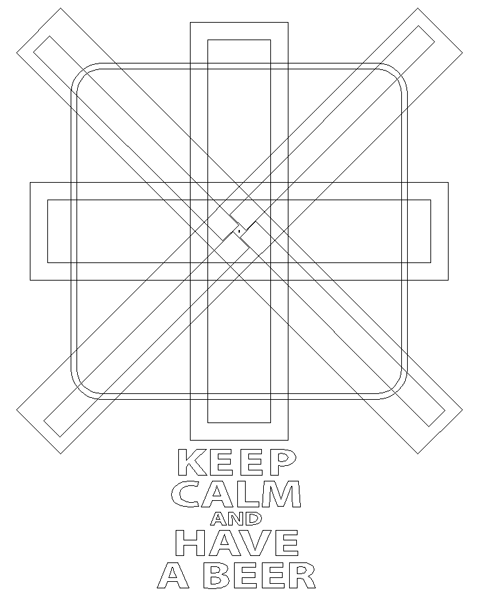Then it was on to the flag background for the sign. First up was the vectors – all done in EnRoute. Other than the overall size of the sign everything was eyeballed, using EnRoute’s tools to rotate, center and space things so they looked right. I would resize and slightly distort the lettering as needed later.