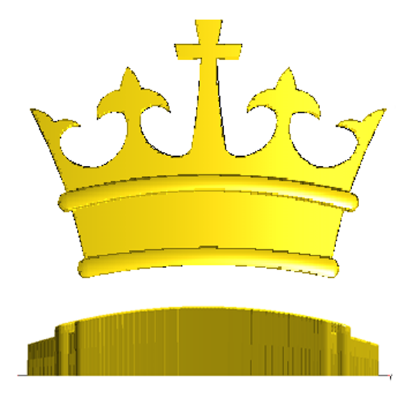 Then I created the lower and middle rings for the crown starting with simple rectangles and then tweaking them using the vector modification tool. The basis crown relief was created as a zero height relief. The two ribs were dome reliefs with a 0.15″ tall vertical edge. I added the wiener shaped oval around the combined reliefs. This would be used to modify the relief.