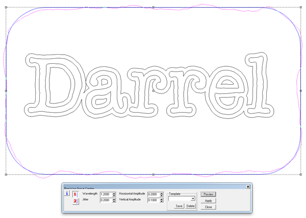 To get an antique look I decided I would give a new tool in EnRoute 5 a try. The tool is called noise distortion. It is found in the transform group, under the subheading of distort. Since it is a new tool to me I had to noodle around a bit to figure out, first how it work, and secondly how to get what I wanted for this file. The preview function proved to be real handy!