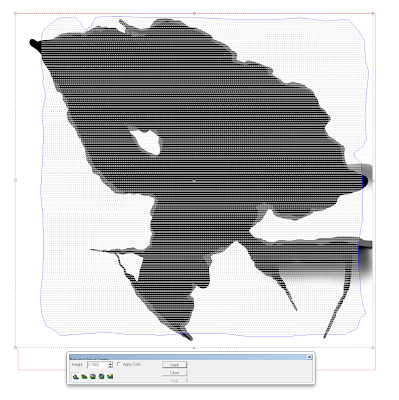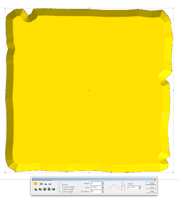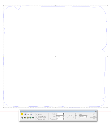 Once I had the bitmaps I needed it was time to kick off the project in EnRoute. I first created a jagged outline of a flat squarish rock. Then using the bevel tool I created a flat panel using the LIMIT TO HEIGHT command with 45 degree edges.