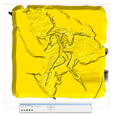 I imported the first of the fossil files I had created and placed it over the relief… then applied the bitmap.