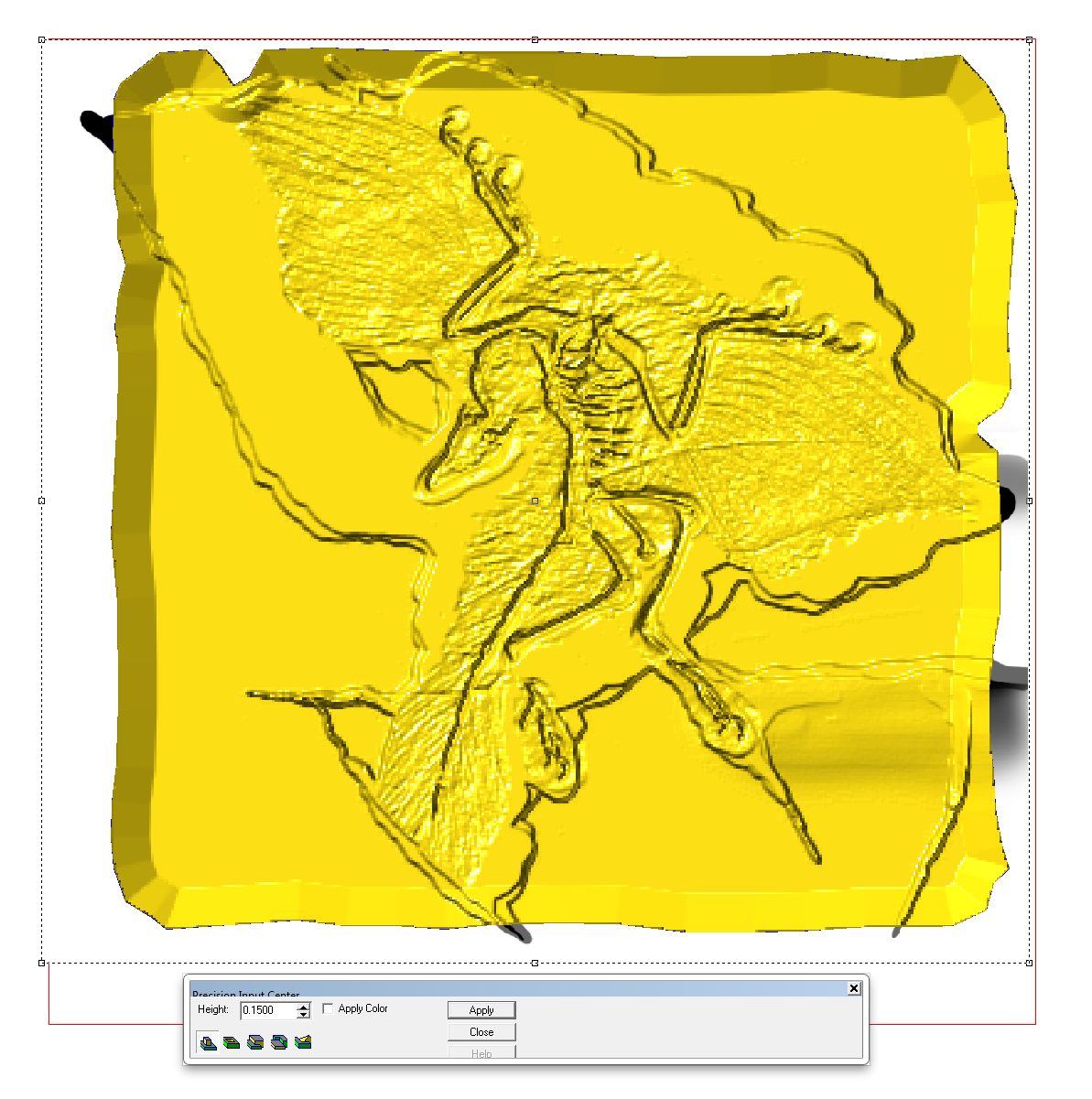 I imported the first of the fossil files I had created and placed it over the relief… then applied the bitmap.