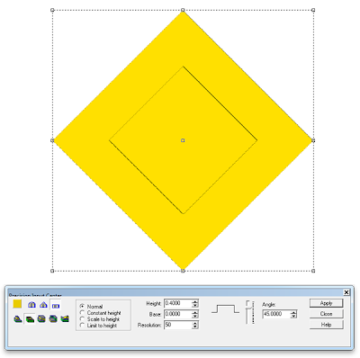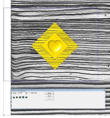 I wanted the outside border to have a raised woodgrain and the sandblasted wood from the TEXTURE MAGIC collection was just the ticket. I imported the bitmap and the resized it until the diamond fit into the section I liked best for this project. You can see just how big I made the bitmap file in relation to the panel we were creating.