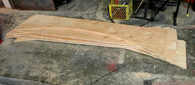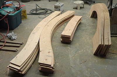 It isn’t often in our shop that we use our router as a jigsaw or cut plywood rather than Precision Board, but when we do it churns out a mountain of parts in a hurry. Today we were cutting curved headers, eyebrows and beams. We whipped through a pallet of 3/4 plywood in no time. Now comes the arduous task of putting the many pieces together! The router room is in desperate need of cleaning too when we get a spare minute.