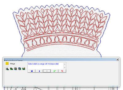 With all the reliefs created it was time to add them to the crest. I used the merge reliefs tool for this task but selected the add to command.