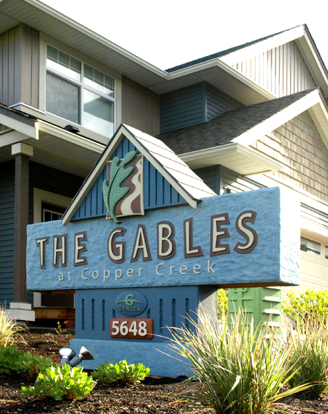 A sign I did a while back is a good example. It isn’t nearly as flashy as much of my work. There are no cartoons here. Instead I took my cues from the development. The logo and name were done by others. I just had to make it work. My design cues came from the buildings themselves, the colors and shapes the designers had chosen. I even used elements of the woodwork trim in the sign. Textures were from the TEXTURE MAGIC collection, used in a subtle fashion for this project. There is a lot more going on here than is apparent at first glance and yet it looks simple and elegant, fitting for the development.
