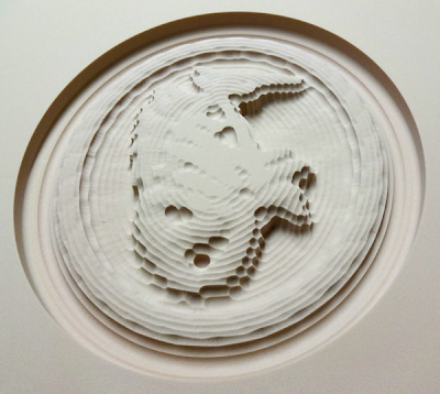 The second shows the 1/8″ bit at work, about 1/3 of the way through the file. The bowl shape is clearly visible.