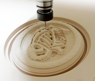 And here’s a shot of the two pieces pulled out of their bowls. I like to route just shy of the spoil board meaning I only surface it couple of times each year.