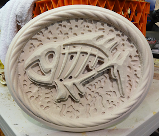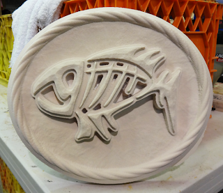 And here’s a shot of the two fish plaques – right off the router. They measure about 12″ wide by 10″ tall. they are routed from 30 lb Precision Board.