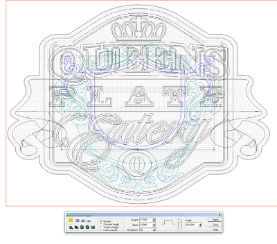 The next step was the borders. These vectors were selected along with the original relief and then I modified the original relief by adding to them 0.15″ in height.