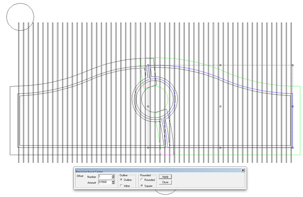 The offset drawing tool was used to create the tubing around the outside. It only took a few seconds to get this far.