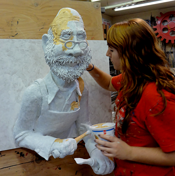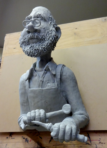 Our client is a police officer, soon to retire. He is building a workshop out back of his new house where he will create wooden projects. He asked us to make a wood carver figure to lean out of a faux window above the door.