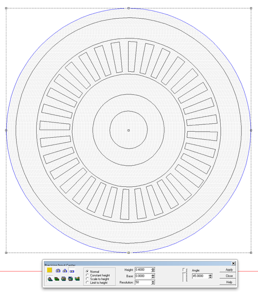 The center of the wheel was made by making a relief 3″ tall. This was then merged highest with the wheel relief.