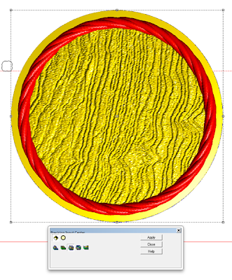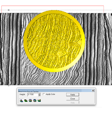 I then created a flat relief of the letter outlines. This relief was modified with a dome shape (to match the woodgrain relief) by using the circle vector I had used to create the relief.