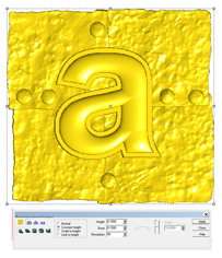 The letter ‘a’ was then added to the relief by modifying the new combined relief. It was at this point I realized that I had made a mistake in the relative elevation of the angled plates.