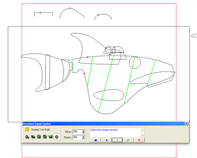 When you open the menu the prompts lead you through the steps. You have to make sure your vector lines are going in the same direction of weird things happen. The little arrow heads on the lines make it easy to see what is going on. The flat profile was for the tail end of the fish, the egg shape for the middle and the round shape was for the nose.