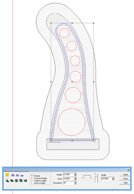 I then modified this line using the point edit tool to add a curve to the top. Some circle vectors would form the cutouts when I created the reliefs.