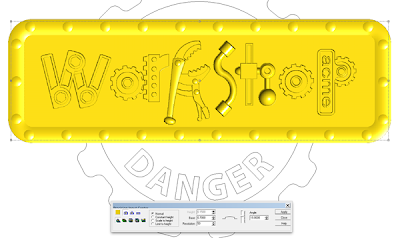 That completed the lettering and I was happy with the result. Then it was on to the border – a simple domed and raised border. I built it as a separate file as well as the rivets, then merged highest.
