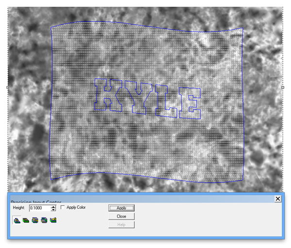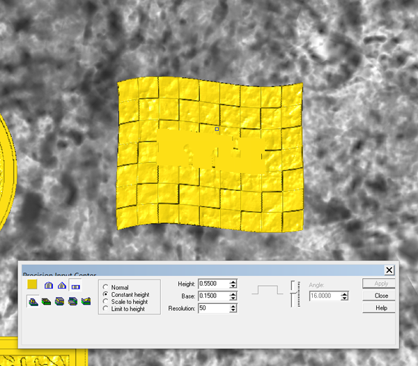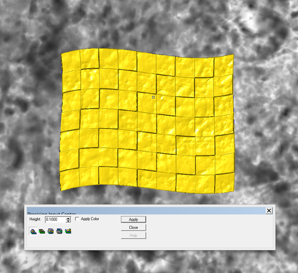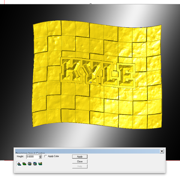 For Kyle I decided a checkered flag would be cool. I wanted it to wave both vertically and horizontally. I would do it using some cool tools in EnRoute. I first created a rectangular flat relief. then I imported a checkered bitmap from my TEXTURE MAGIC COLLECTION. I carefully sized the flat relief to fit the checkered squares.