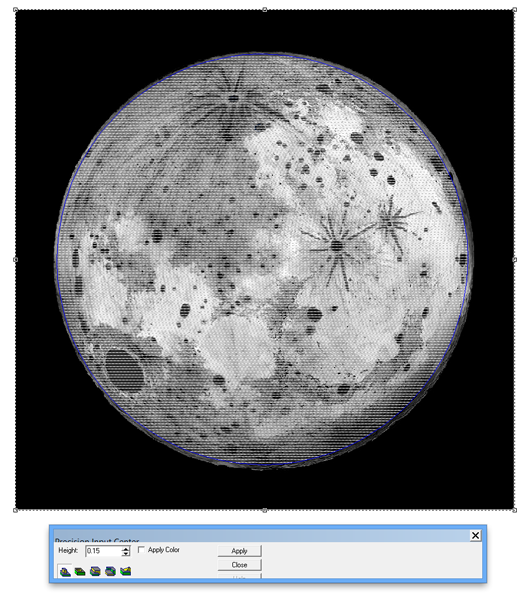 Before I merged the lettering border to the moon I modified the moon relief by adding the lettering. It had to be higher than the lettering outline relief to show up.