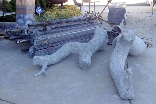 There will be a lot of pieces to design and route for this project, but along with that is a lot of other work which will be tied in. We are literally building a small mountain (large in my eyes) on which some of the routed work will attach. As onsite work begins we have largely been working in the shop, prefabricating as much as we can. Our client regularly drops off the supporting structural frameworks around which we will build our pieces.